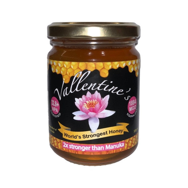 The worlds’ strongest honey with a taste like no other. Made in the pristine region of the Northern Rivers of NSW this raw, wild crafted honey is more than twice the strength of the highest Manuka at less than half the price. It is Certified 32+ NPA and equivalent to 1884 MGO.